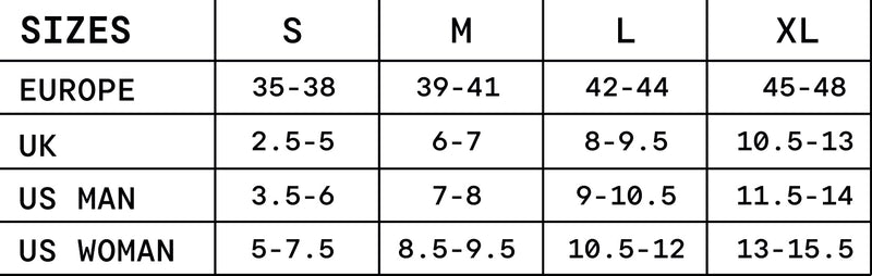 Onze sokken vallen normaal. Zit je tussen twee maten in? Neem een maat kleiner voor de beste fit.